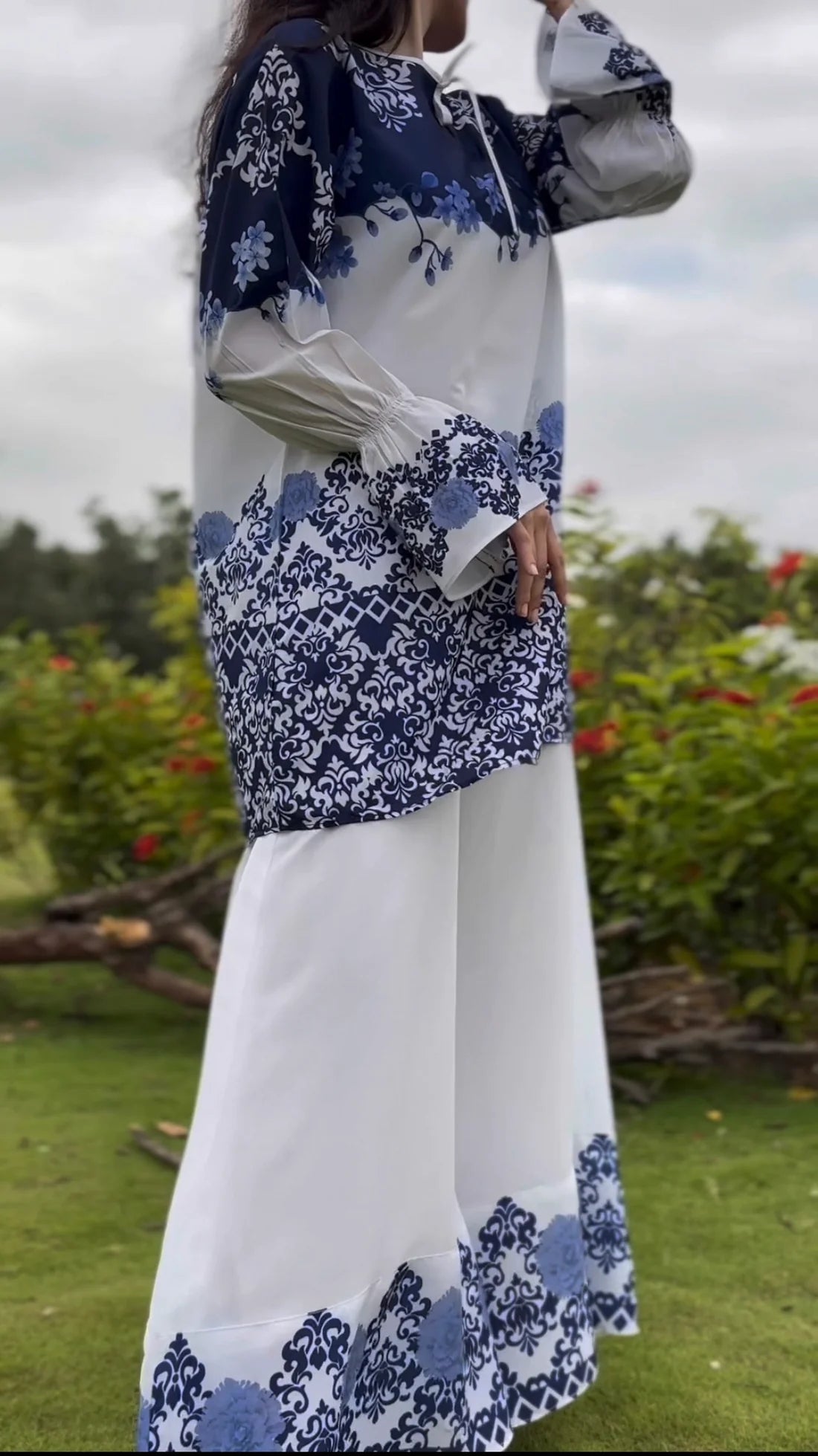 Stitched 2 piece printed shirt and printed palazzo
